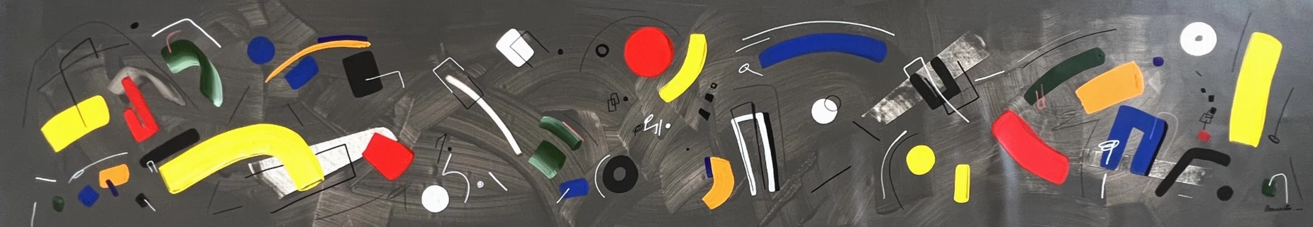 En Flujo Continuo, la composición se expande en un formato horizontal poco convencional, invitando al espectador a recorrer su superficie como si siguiera la corriente de un rio, el desplazamiento del viento o el pulso de una energía inagotable. El movimiento es constante, vibrante y envolvente, desplegándose en un ritmo que desafía ­a la quietud del espacio. Los contrastes cromaticos y las transiciones entre formas generan una sensación de inercia y transformación, evocando la fluidez del tiempo, la naturaleza en perpetuo cambio y la conexión entre lo visible y lo intangible. La obra no tiene un punto de inicio ni un final, sino que se convierte en un flujo ininterrumpido de expresión y emoción, una obra abstracta que se despliega sin barreras, como un horizonte en movimiento.