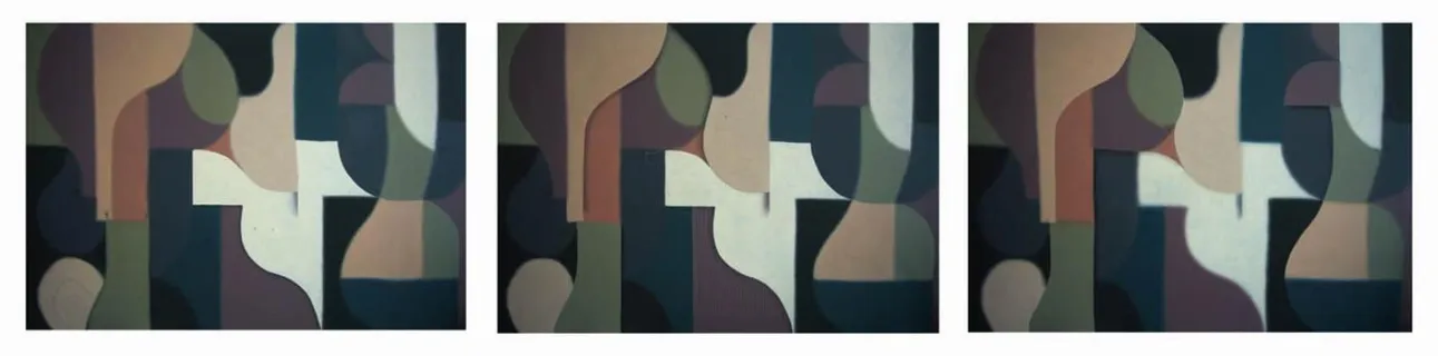 Conejo blanco con jersey estampado mirando un caracol - Elvis señalando un jamón ibérico en equilibrio sobre un jarrón verde - Pingüino posando a lo Ingmar Bergman junto a cuello de cisne (Tríptico) |